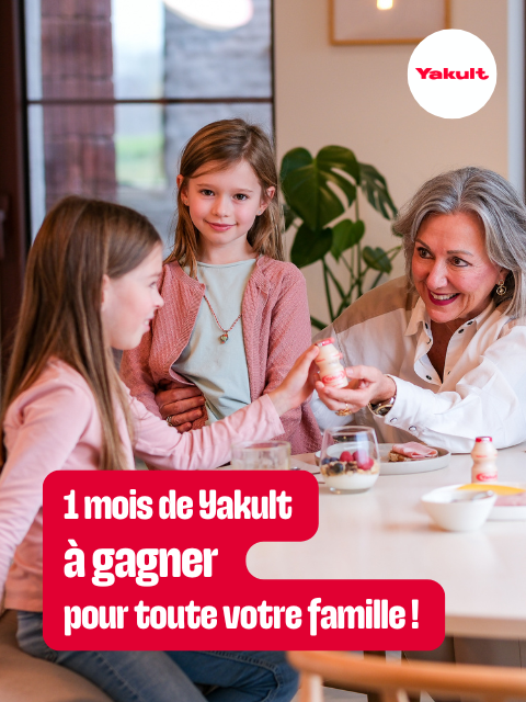 Yakult offre un mois de Yakult gratuit à 30 familles (de 4 personnes) en Belgique.